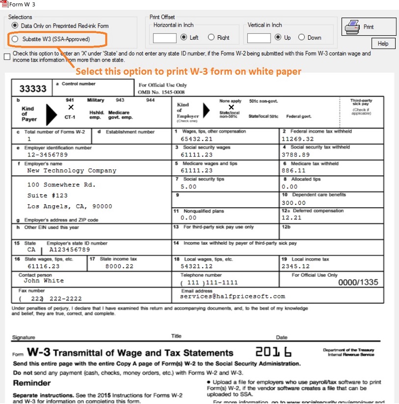 If you need to print W3 form on white paper, please choose the option "Substitute Form".