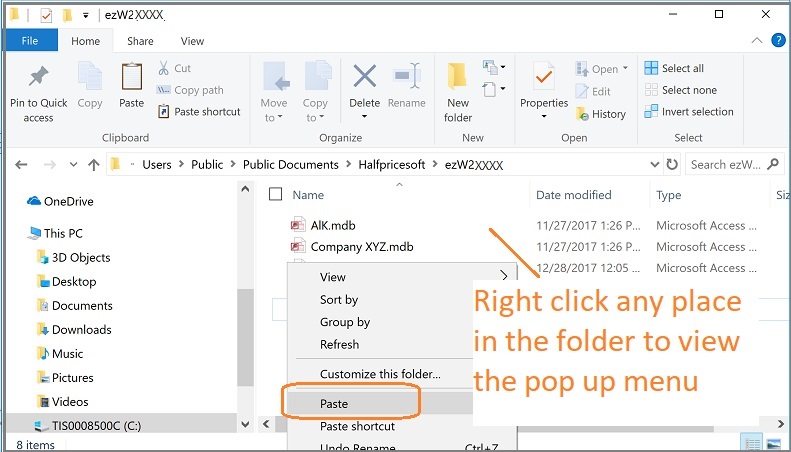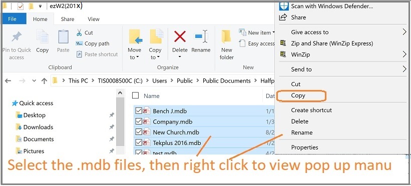 Step 1. Open ezW2 gintEzW2Year-1 database folder and copy the .mdb files