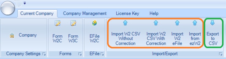 2. Import both W2 previous data and corrected data from .csv file (with sample data files) This feature is available with ezW2Correction Enterprise Version.