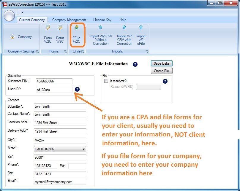 3. ezW2Correction allows user to set up unlimited companies with one flat rate. So if you have multiple companies or you are an accountant, you can add new company by clicking top menu "Company Management->New company".